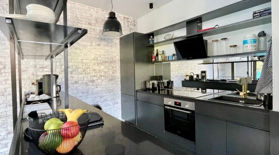 A fully equipped open-plan kitchen with top-of the line appliances